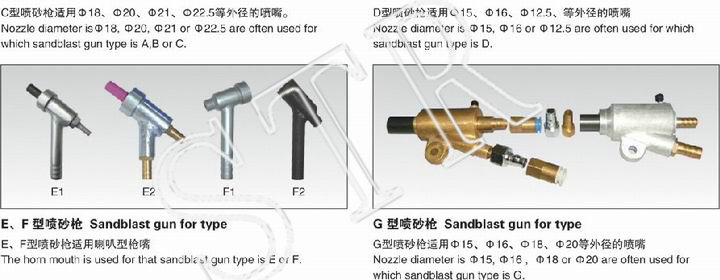 噴砂槍分普壓式和后加壓式五種。噴砂槍的材料、加工處理玩法注意分:鋁不透鋼壓鑄,紫銅澆鑄,鐵、不透鋼焊結,聚氨酯發泡澆鑄等。