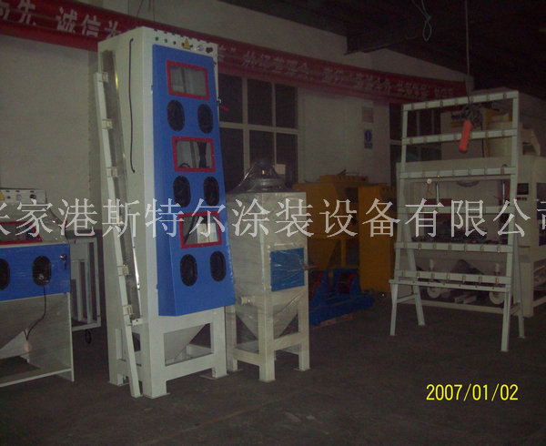 平板玻璃,大理石,金屬等板材垂直通過式干噴砂機,適用于寬度小于2.4米