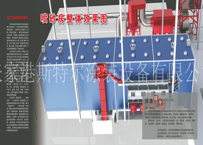 會產生大量粉塵,在設計中要粉塵泄漏,特別考慮大門的密封;要盡量減少粉塵的排放;噴砂工人的呼吸空氣,要由經過特殊處理的專門空氣來供應。另外,充分采取措施降低噪音。