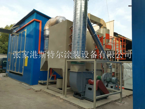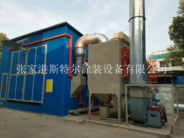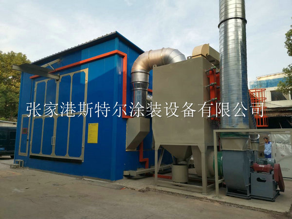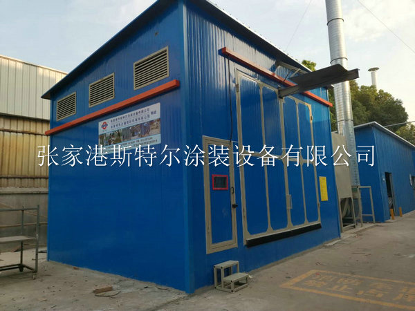 ●噴砂房內部尺寸(長度 7米×寬度5米×高度4米),房體骨架由型材制作而成,內部敷設專用噴砂房橡膠板作為防護,中間層為鋼板,最外層墻體敷設巖棉板進行消音及美觀; 防雨百葉:
